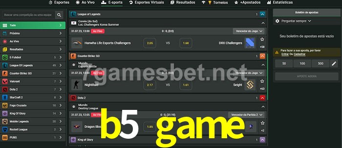 O b5 game oferece uma grande seleção de opções de apostas em e-sports com probabilidades competitivas